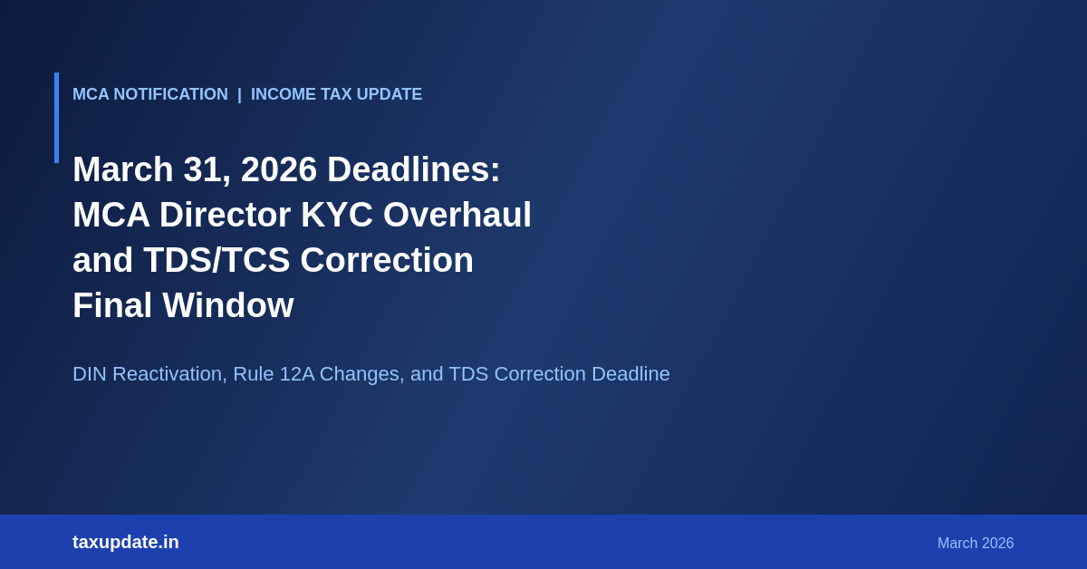 March 31, 2026 Deadlines: MCA Director KYC Overhaul and TDS/TCS Correction Final Window